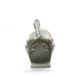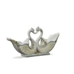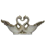 An uniquely designed double swan planter, vase or wine holder 22″ wide x 9.5″ tall. The artist designed vase combines function and beauty with meticulous hand applied jewels and faux pearls intermittently placed all over its shapely design against contrasted accent tones of silver with antiqued glaze that draws out the details in the carvings. The vase pairs nicely with other items from the Silver Pearl Collection. The item is hand cast in durable polyeurethane resin.